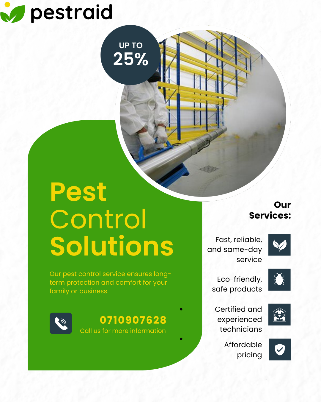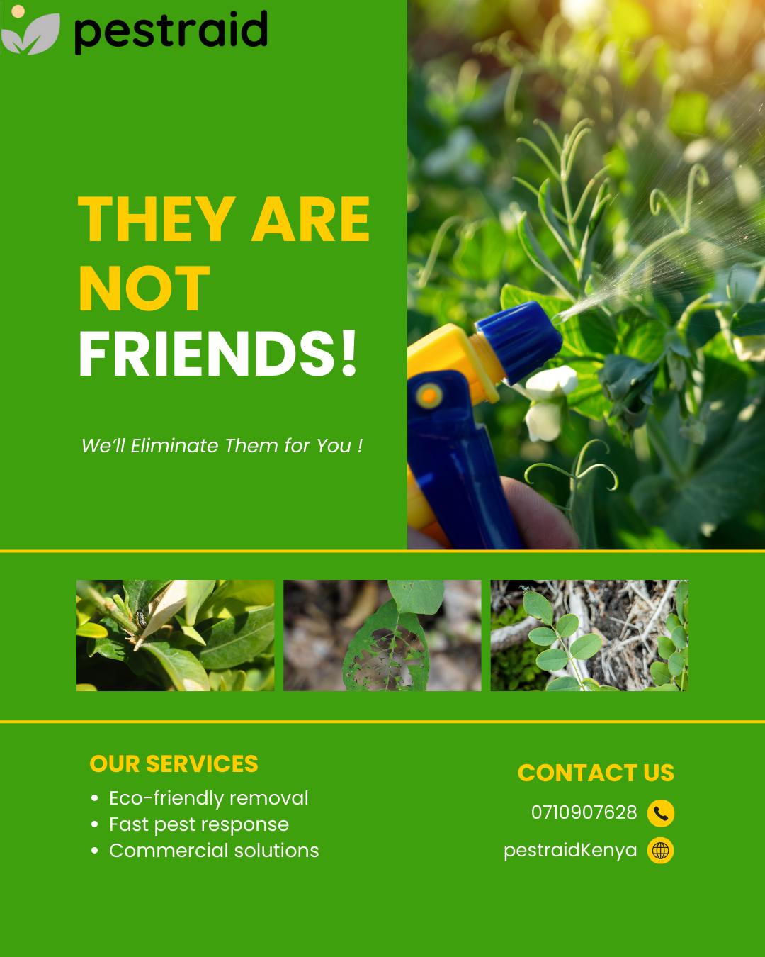 Pestraid Kenya is a leading pest control and fumigation company offering reliable solutions to households, businesses, and institutions across the country. Established with the goal of creating safe and pest-free environments, the company has built its reputation on professionalism, integrity, and customer satisfaction. By combining modern techniques with eco-friendly products, Pestraid Kenya ensures that its services are effective while remaining safe for people, pets, and the environment.