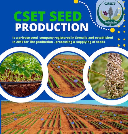 CSET Group is a group of stakeholder organizations operating in the agriculture, Livestock, Forestry and Range in Somalia. Its aim is to transform the traditional farming methods into modern methods, increasing agriculture production, reducing poverty and unemployment thus improving the quality and standard of living of Somali community.