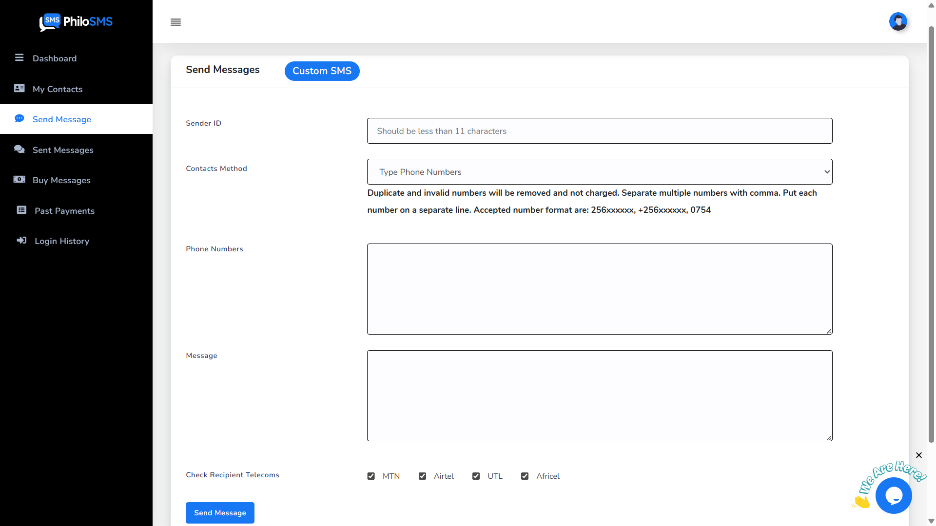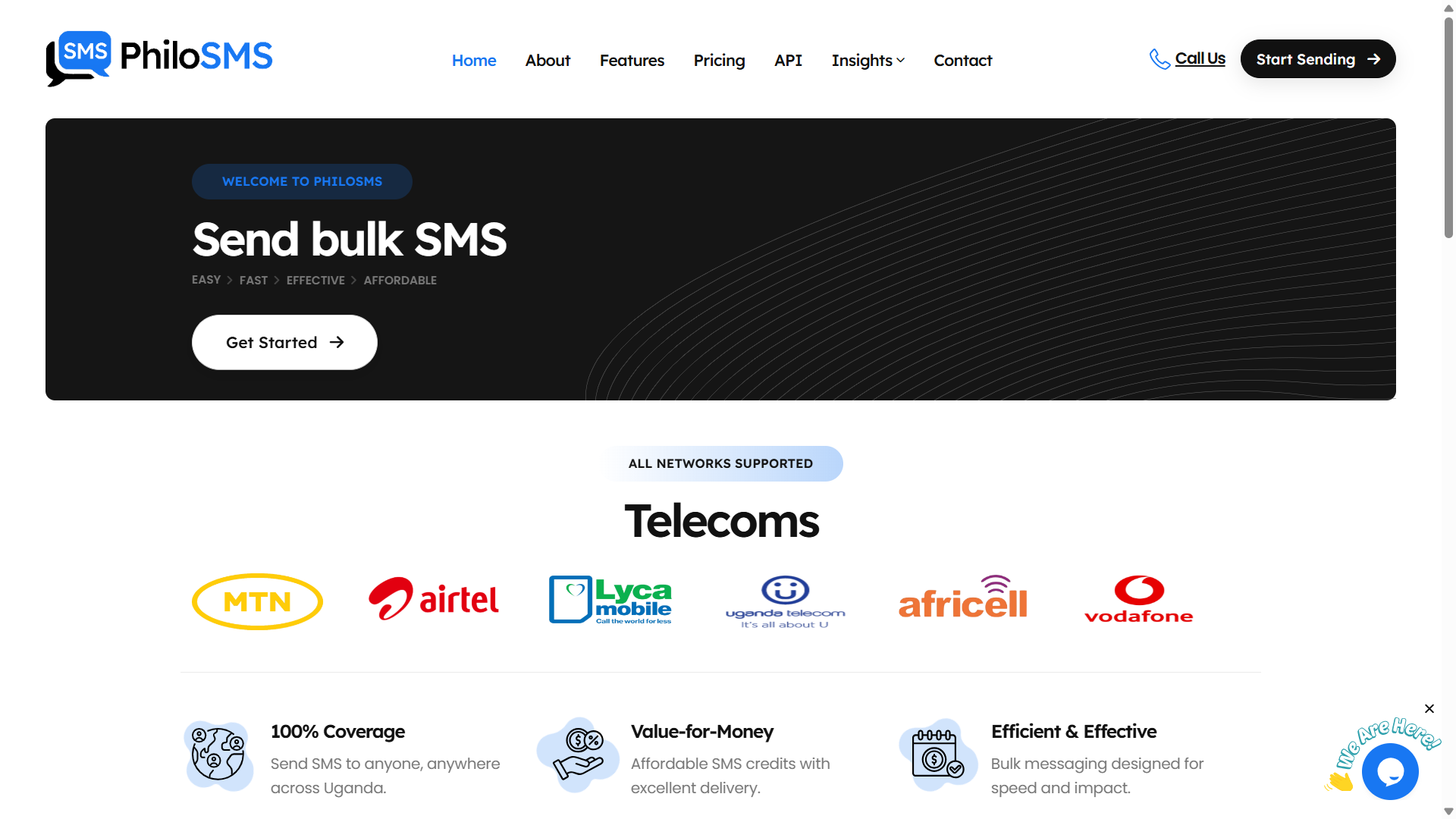 PhiloSMS supports messaging across all major Ugandan networks. Sign up today and start sending.