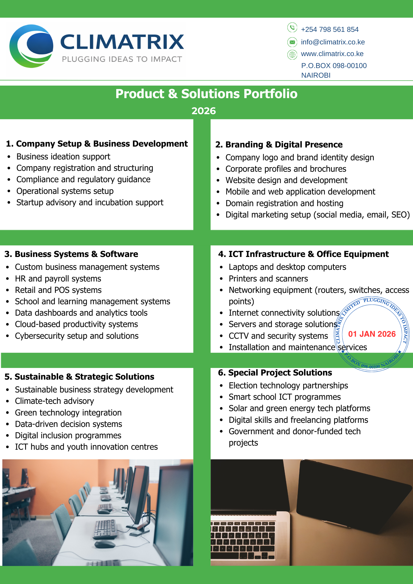 Our core services include digital skills training, climate and renewable energy solutions, data and technology platforms, and impact-driven project implementation.