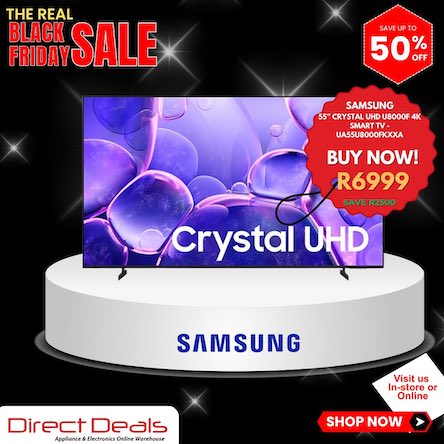 Direct Deals specializes in all Samsung products, carrying a wide range of CURVED LED, UHD, LED and Plasma TVs while hosting a digital buffet of the world’s latest and greatest electronic fascinations, all at the lowest prices. An extensive product line is always on offer, offering a wide range of quality brands – offering TVs, Sound Bars, Home Theatres, Docks, Components, DVD Players, DSTV Decoders, Digital Cameras, Laptops, Monitors, Printers, EXT HDD, Software, Office Automation, Cellular, Tablets, Memory Cards, Flash Memory, Portables, Home Appliance & a full range of accessories